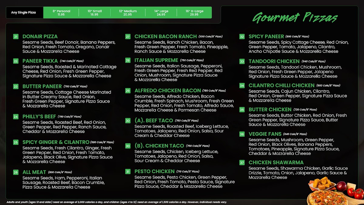 Includes vegan cheese, signature pizza sauce, sesame seeds.
